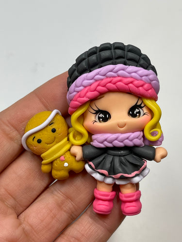 Ginger Cookie Christmas Girl Clay Figurine - handmade