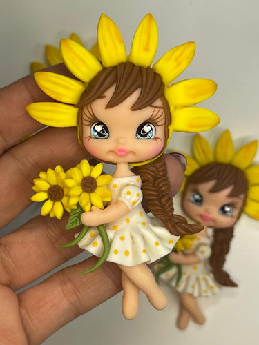 Flora The Sunshine Sunflower Girl - Clay Figurine - Handmade