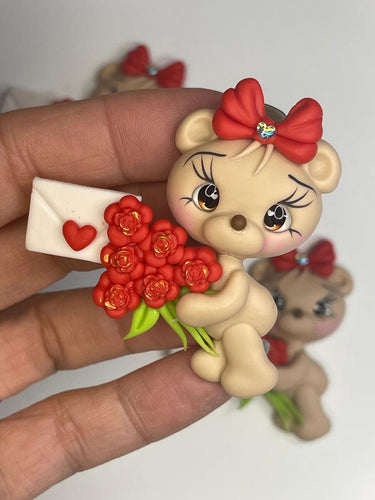 Penelope Valentine's Teddy Bear Clay Figurine - Handmade