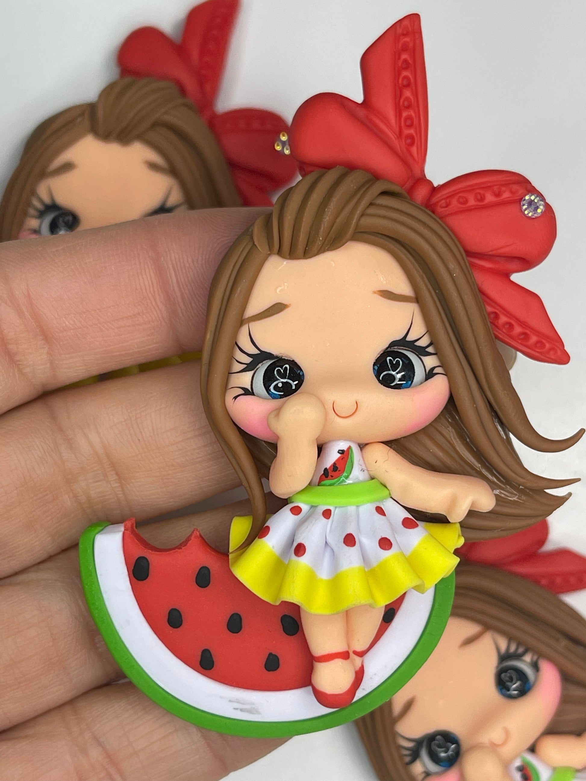 Watermelon Girl Clay Figurine- Handmade